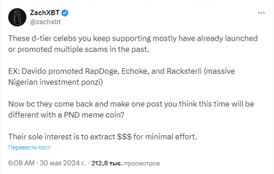 Критика в адрес музыканта не заставила себя долго ждать. Руме Офи, известный преподаватель в области криптовалют и активный участник инициатив по информированию инвесторов, жестко осудил действия Давида, описав их как мошеннические. Офи отметил, что поведение музыканта соответствует характерным признакам схемы «rug pull», при которой создатели токенов извлекают прибыль, оставляя инвесторов с обесценившимися активами.