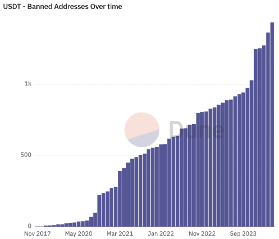 Актуально отметить, что согласно данным, предоставленным самой Tether, на данный момент в черном списке компании числится около 1 500 адресов, на которых содержится приблизительно 1,1 миллиарда USDT. Это значительное количество, учитывая, что на сегодняшний день рыночная капитализация USDT превышает 80 миллиардов долларов.